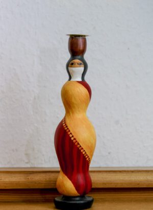 70,00 € Alle Preisangaben exkl. MwstMittelgroße türkis und weiß bemalte Lichtfigur Suleika als orientalisch-weihnachtlicher Kerzenhalter.